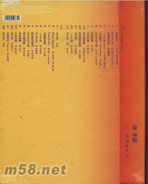陳輝陽十二金釵眾生花(m58.net) 樂代樂匠陳輝陽,雕刻都市女性大觀 夕陽曲詞 十二女聲 十二大導(dǎo) 逾百萬港無制作試天碟 十二金釵眾生花CD+DVD 著名作曲家陳輝陽心血力作 陣容強大,集合中港臺等優(yōu)質(zhì)女聲 配以十二大導(dǎo)為黃曲創(chuàng)作精采錄像 十二金釵女聲 關(guān)淑怡、飛兒樂團(tuán),鄧麗欣,李香琴,周璇,AT17,曹芳,陳小霞,吳寸霏,馮穎琪,關(guān)心妍 十二大導(dǎo)錄像 卓韻芝,夏永康,古天樂,金培達(dá),麥婉欣,蔡卓妍,林夕,高輝,小克,歐雪兒,彭浩翔,鄭秀文