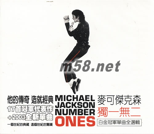 NUMBER ONES 獨(dú)一無二 白金冠軍單曲全選輯(臺(tái)灣版)(m58.net) 一個(gè)世紀(jì)的典藏這個(gè)世紀(jì)的驚嘆 17首冠軍暢銷代表作 + 2003全新單曲 *流行樂壇奉為"King of Pop"的超級(jí)天王Michael Jackson,其演唱生涯截至目前已超過30年以上。這位不斷創(chuàng)造新風(fēng)潮及不斷超越自己所立下的里程碑的樂壇巨星,在流行樂界樹立無遠(yuǎn)弗界的影響力及卓越貢獻(xiàn),無論他的歌曲、專輯、音樂錄影帶、造型、舞步等,都已是流行樂壇發(fā)展的一部份。 *《獨(dú)一無二 白金冠軍單曲全選輯Number Ones》代表著Michael的輝煌過去及在流行音樂上的影響力,囊括了「Off The Wall」、「Thriller」、「Bad」、「Dangerous」以及2001年邁入新世紀(jì)所發(fā)表的力作「Invincible」等歷年專輯中的排行冠軍單曲,另外收錄最新發(fā)表的單曲『One More Chance』,首首膾炙人口,值得新生代樂迷去傾聽,讓樂迷可迅速地對(duì)他傳奇的音樂歷史做一番回顧與認(rèn)識(shí)。