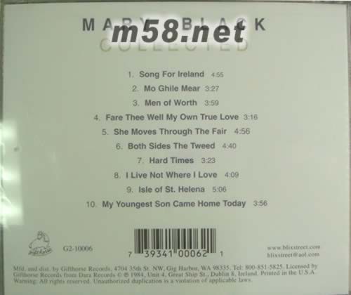 《Collected》是愛爾蘭元老級著名女歌手瑪麗?布萊克(Mary Black)的第一張精選集,收錄了早期的10首民謠風格的歌曲,很寧靜的感覺,聽后讓人心曠神怡。