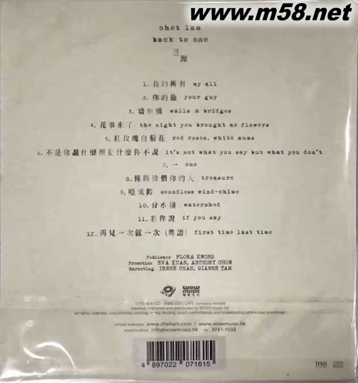 1. 我的所有 2. 你的他 3. 墻與橋 4. 花事未了 5. 紅玫瑰白菊花 6. 不是你說什么而是什么你不說 7. 一 8. 懂得珍惜你的人 9. 啞風鈴 10. 分水嶺 11. 若你說 12. 再見一次就一次
