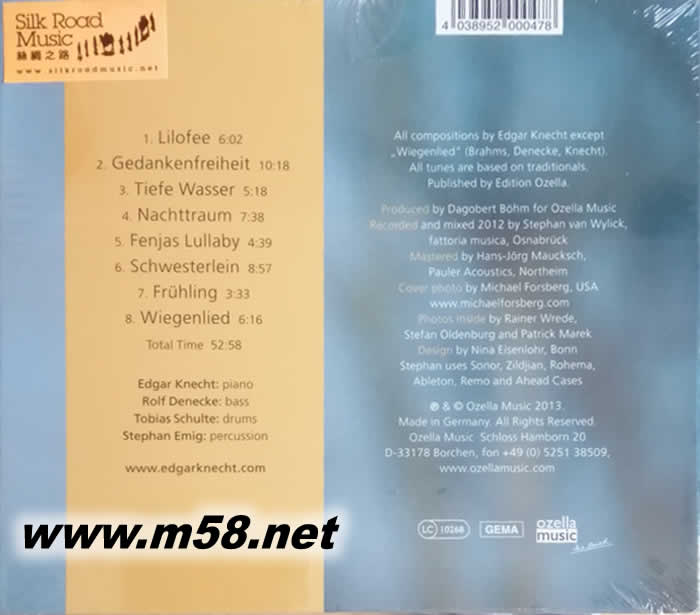 劉漢盛榜單 - 在水深處舞動(dòng) Dance on Deep Waters(m58.net) 獲獎(jiǎng)無(wú)數(shù)、德國(guó)當(dāng)今最具天份與創(chuàng)意的爵士鋼琴演奏家! ★ 精簡(jiǎn)深邃的美麗旋律,描繪出人類最深層的慾望與愛戀! ★ 名廠 Ozella 出品、老虎魚操刀后製,音響迷的最佳饗宴! ★ 本專輯 LP 版本入選音響論壇總編輯劉漢盛「復(fù)刻黑膠嚴(yán)選 100」推薦片單! 彈得一手流麗爵士鋼琴的埃德加.尼赫特,為德國(guó)著名的演奏家兼作曲家;他曾為多部音樂劇、影視紀(jì)錄片作曲和配樂,也曾以爵士鋼琴改編多首德國(guó)民歌,在古巴夏灣拿的爵士樂音樂節(jié)中受到熱烈歡迎。這張《在水深處舞動(dòng)》是他與低音大提琴手 Rolf Denecke、鼓手 Stephan Emig 合作之新輯,以愛情、死亡、自由為主題,描述著在慾望深淵邊緣肆無(wú)忌憚生活的情緒;專輯由德國(guó)著名的音樂家兼錄音師 Dagobert Böhm 所創(chuàng)立的 Ozella 唱片出品,后期由著名的「老虎魚」製作,不僅簡(jiǎn)潔優(yōu)美而富深意的樂曲沁人心肺,音效更是臻於完美,是獻(xiàn)給音響迷的一份絕讚獻(xiàn)禮。 音響論壇總編輯劉漢盛先生強(qiáng)力推薦:「不夸張,這張唱片我放上去,聽不到一分鐘就決定把它收錄在榜單中,就那幾個(gè)輕柔的音符而已,我已經(jīng)全然聽出那是絕佳的錄音,以及絕美的音樂。」