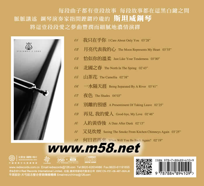01..I Care About Only You 我只在乎你 3'28'' 02..The Moon Represents My Heart 月亮代表我的心 3'55'' 03..Just Like Your Tenderness 恰似你的溫柔 3'00'' 04..The North In The Spring 北國之春 2'43'' 05..The Camellia 山茶花 2'38'' 06..Being Separated By A River 一水隔天涯 3'41'' 07..The Shades 夜色 4'03'' 08..A Presentiment Of Taking Leave 別離的預感 2'25'' 09..Good-bye My Love 再見我的愛人 2'46'' 10..A Date After Dusk 人約黃昏后 2'15'' 11..Seeing The Smoke From Kitchen Chimneys Again又見炊煙 3'25'' 12..When Will You Be Back Again? 何日君再來 2'19''