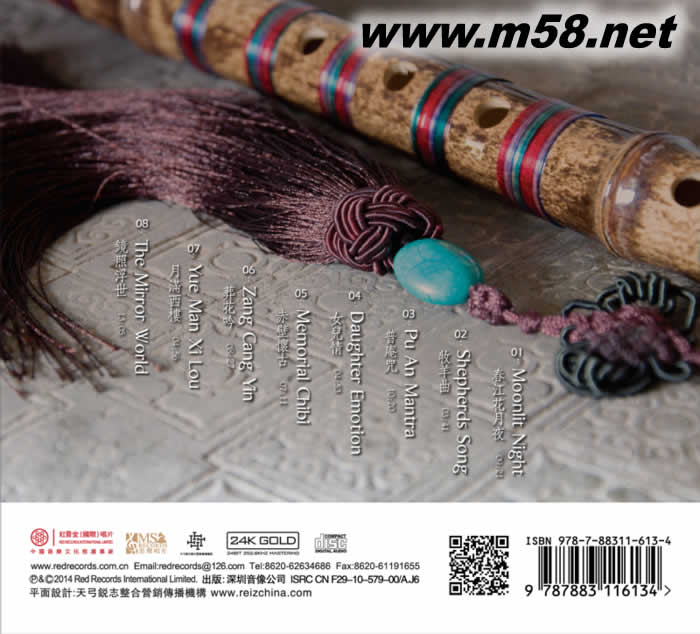 01. Moonlit Night 春江花月夜 09'21'' 古曲 張子盛 編曲 Ancient Music Arranger : Zhang Zi Sheng 02. Shepherds Song 牧羊曲 03'41" 曲 王立平 Compose: Wang Li Ping 03. Pu An Mantra 普庵咒 10'20" 古曲 張子盛 編曲 Ancient Music Arranger:Zhang Zi Sheng 04. Daughter Emotion 女兒情 04'53" 曲 許鏡清 Compose: Xu Jing Qing 05. Memorial Chibi 赤壁懷古 07'11" 曲 陳大偉 Compose: Chen Da Wei 06. Zang Cang Yin 葬花吟 08'27" 曲 王立平 Compose: Wang Li Ping 07. Yue Man Xi Lou 月滿西樓 04'56" 曲 蘇越 Compose: Su Yue 08. The Mirror World 鏡照浮世 13'05" 賀小帥 編曲 Arranger:He Xiao Shuai