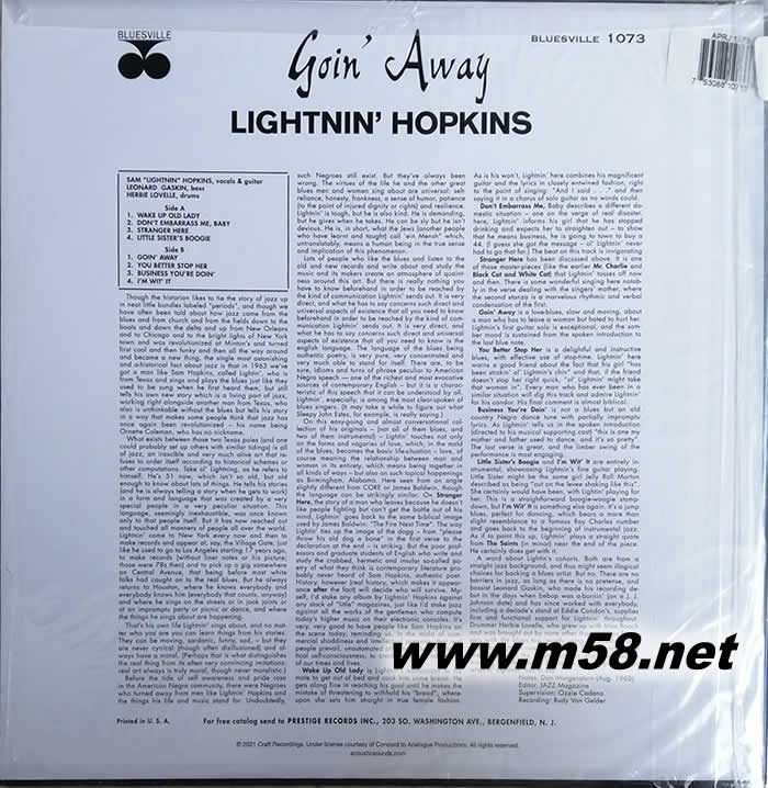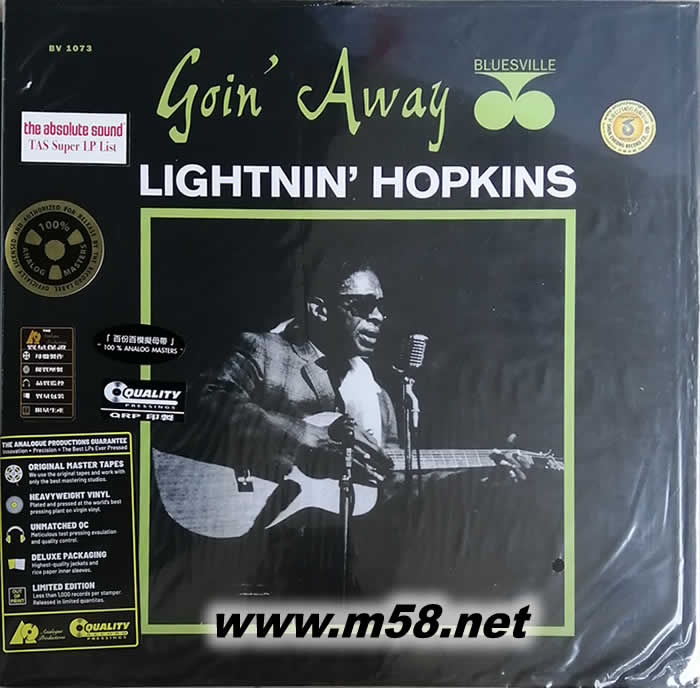 萊克林.霍普金斯《 GOIN' AWAY 》LP,TAS榜上黑膠,閃電霍普金斯,最純正的布魯斯吉他手,入選100位現代西方流行音樂史最偉大吉他手功勛人物。這張1963年6月錄制的專輯是他最優秀的專輯之一。