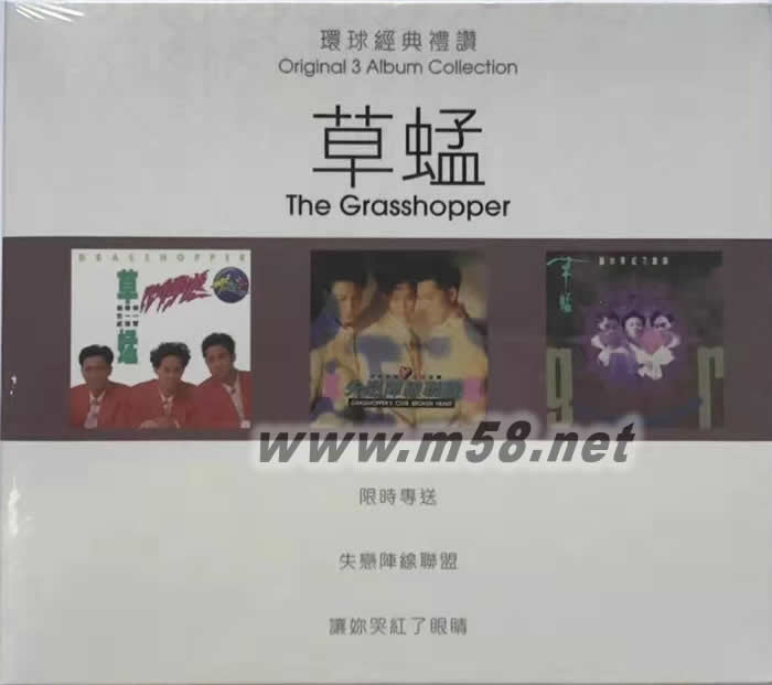 單碟1 8860689 草蜢 - 限時專送 00602488606899 1.限時專送ABC 2.一路順風 3.今夜我好想妳 4.謠言 5.妳不會不懂 6.妳想跳舞嗎? 7.我習慣用回憶溫暖自己 8.粉紅色電話 9.別說我冷漠 10.給妳的祝福 單碟2 8860690 草蜢 - 失戀陣線聯盟 00602488606905 1,半點心 2.失戀陣線聯盟 3.每個夢都有溫暖的窩[電影「忍者龜」主題曲 4.愛過就忘 5.一對一 6.心中的歌 7.也算是緣份[電影「流眼煞星」主題曲] 8. 9.95 [電影「忍者龜」主題曲 9.告訴我你曾經愛過我 10.做個自由人[電影「流眼煞星」主題曲] 單碟3 8860691 草蜢-讓妳哭紅了眼睛 00602488606912 1.讓妳哭紅了眼睛 2.愛情嘉年華 3.好久不見 4.今夜不可以 5.無夢的夜晚 6.意外 7.沒有人知道她是誰 8.好浪漫 9.閃電騎士 10.這一次換我玩