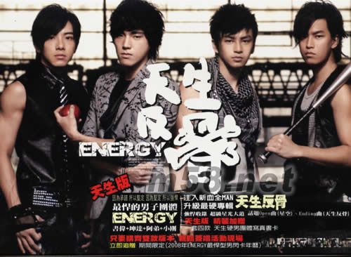 天生反骨(天生版)(m58.net) 臺(tái)灣男子演唱團(tuán)體Energy出道五年,由2003年成員ToRo離隊(duì),至2005年團(tuán)長(zhǎng)牛奶為了專注于舞蹈而退團(tuán),自去年三位成員書偉、坤達(dá)和阿弟推出《猩人類》,2007年Energy以全新面貌再度大展勁舞本色,加入新成員小剛,并以酷勁形象大耍《天生反骨》!全新專輯《天生反骨》收錄了10首情歌,包括了「天生反骨」、「上癮」、「鋼索」、「星空」和「萬(wàn)有引力」。首波同名主打歌「天生反骨」是一首結(jié)合了新世代搖滾加上嘻哈Rap的酷歌,歌詞里完全反應(yīng)出年輕人反抗既定成見的熱血反骨性格。 為了表現(xiàn)出搖滾節(jié)奏的力量,在「天生反骨」的舞蹈中,Energy融合了霹靂舞、新杰克搖擺、戰(zhàn)斗舞、電流和嘻哈,也有彼此互相挑釁和帶點(diǎn)戰(zhàn)斗意味的互動(dòng),甚至還有挑戰(zhàn)人體工學(xué)的全體倒立45度的高難度動(dòng)作。為了配合「天生反骨」的酷勁,導(dǎo)演采用火來襯托反骨舞的酷勁,在棚里燒起一圈火,讓Energy在里面大跳反骨舞,此外還有旋轉(zhuǎn)火球和跨越火欄的場(chǎng)面。
