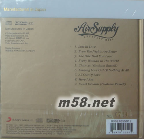 GREATEST HITS (SONY K2HD系列)(2017SONY 特價系列K2HD)專輯背面圖片
